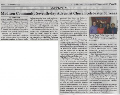 The Madison Community Seventh-day Adventist Church family is inviting you, all our past and present members and friends, to celebrate our 30th Anniversary and God’s blessings through the years!