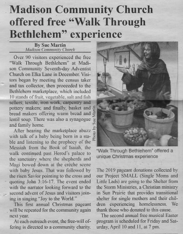 We do a Walk Through Bethlehem pageant approximately every other year, the most recent in December 2024. Here is a description.